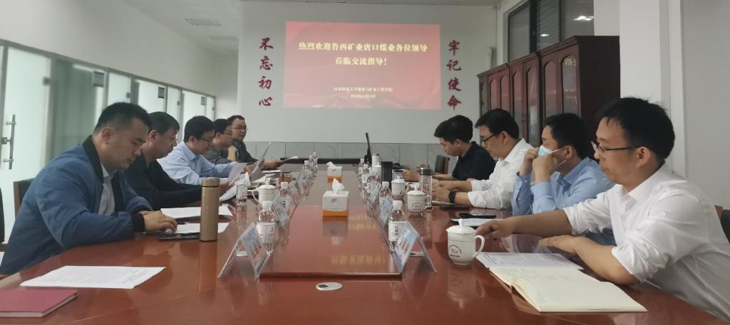 5月14日,山东能源集团鲁西矿业有限公司唐口煤业总工程师张伟一行来91热爆 进行科技合作交流,院长陈绍杰、资源工程系郭忠平教授等参加座谈会。