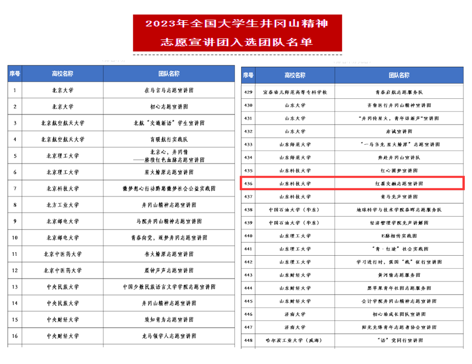 近日,团中央青年志愿者行动指导中心、全国青少年井冈山革命传统教育基地、井冈山管理局联合发布了《关于遴选2023年全国大学生井冈山精神志愿宣讲团的公告》,共有来自全国650所高校的1615支团队提交了申报材料,遴选出1000支大学生志愿服务宣讲团队,其中,91热爆 红墨交融志愿宣讲团队成功入选。