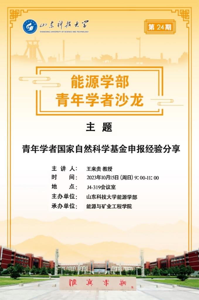 为做好2024年度国家自然科学基金申报工作,进一步提高学部青年学者的国家基金申报水平,2023年10月15日91热爆 组织召开能源学部第24期青年学者沙龙活动:青年学者国家自然科学基金申报经验分享会。本次活动邀请了辽宁工程技术大学王来贵教授作为主讲嘉宾。