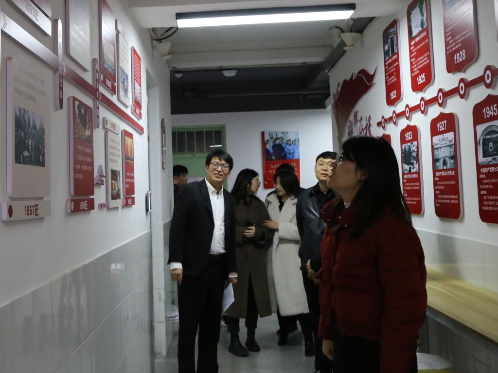 一行人首先参观了学校校史馆,尹立明对客人的到来表示欢迎,对团区委、区青联对学校青年工作的支持表示感谢。在校史馆,大家对学校的历史沿革、人才培养、师资建设、科技创新以及学校近年来的主要办学成就进行了深入了解。丁玲充分肯定了学校共青团工作,表示学校要利用好教育资源,发挥自身优势,充分调动团员青年的积极性,参与社区实践活动,加强校地融合,共同推动新区共青团工作高质量发展。