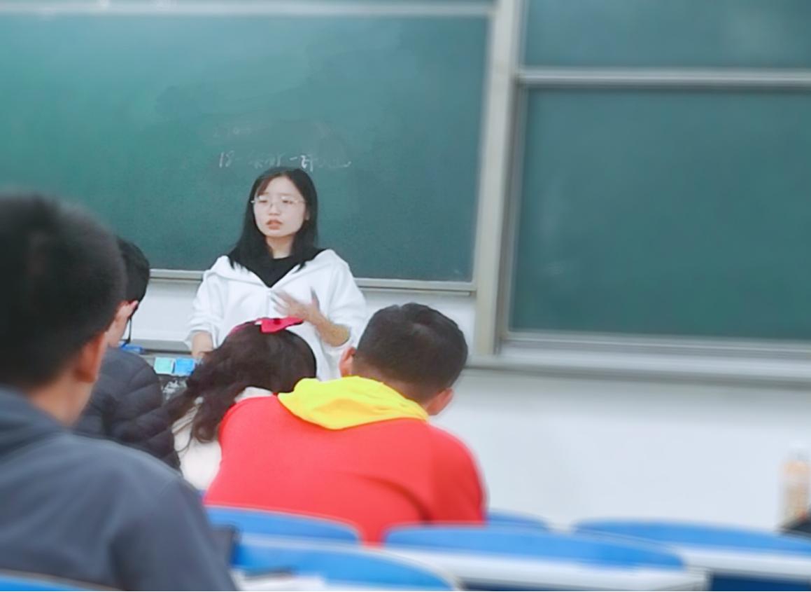 杨俊娜同时也在班级担任学习委员,为提升班级向学氛围,她带领着同学们开展班级特色活动——工数大讲堂,并亲自担任讲解员。每节课她都先自己领会了,再一遍一遍的在黑板上详解推导过程,让每一位同学都不掉队。为了激发大家英语学习兴趣,她又举办了英文演讲活动,在赛前给同学们详细地讲解演讲的内容和技巧。杨俊娜表示,既然在班级里担任了这一份职务,那便应承担起这份责任。